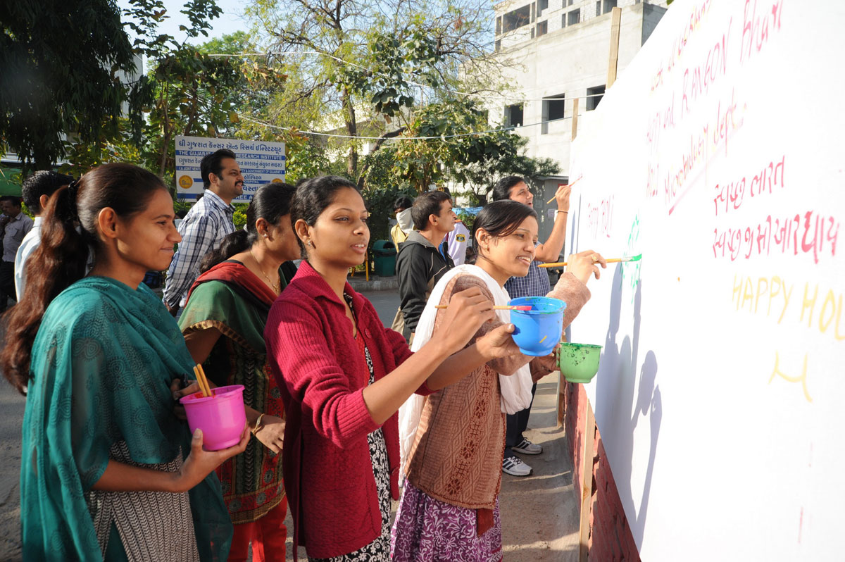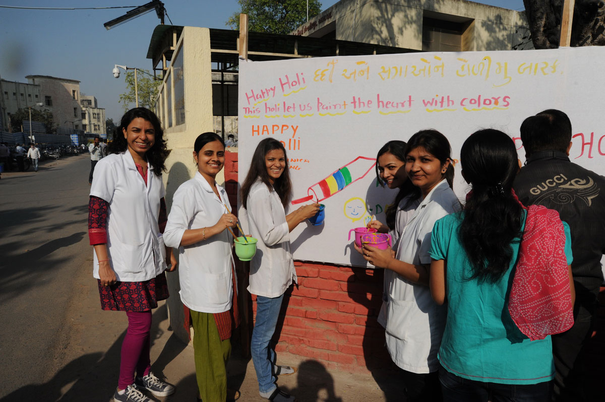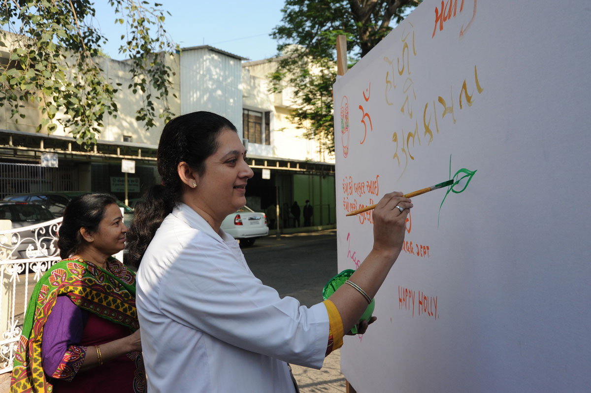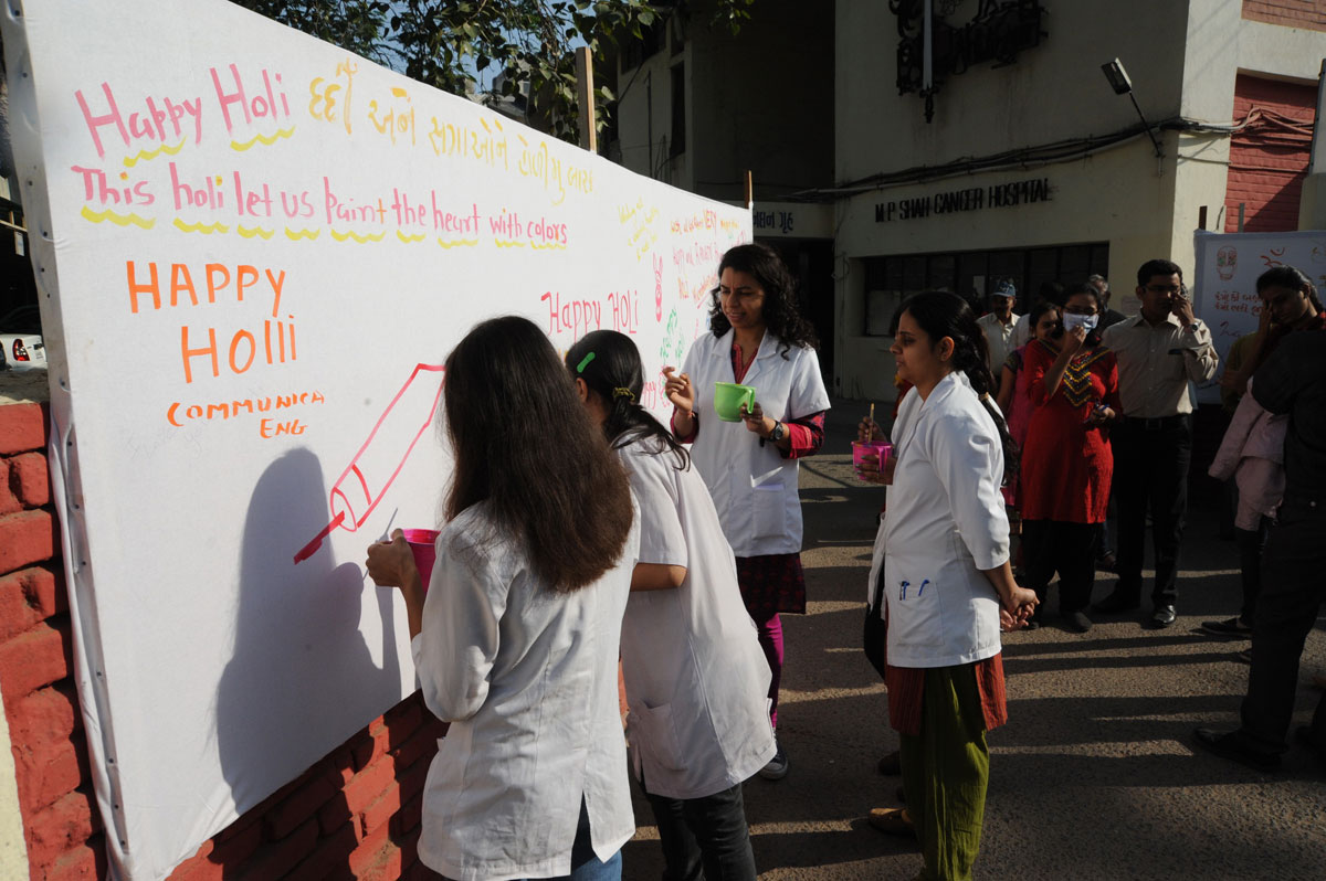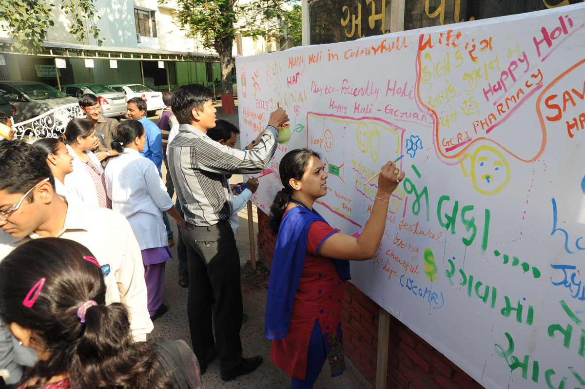 Holi Dhuleti festival was celebrated on 5th March differently at GCRI by staff members with colourful strokes painted on canvas revealing their feelings in the form of slogans and drawing.