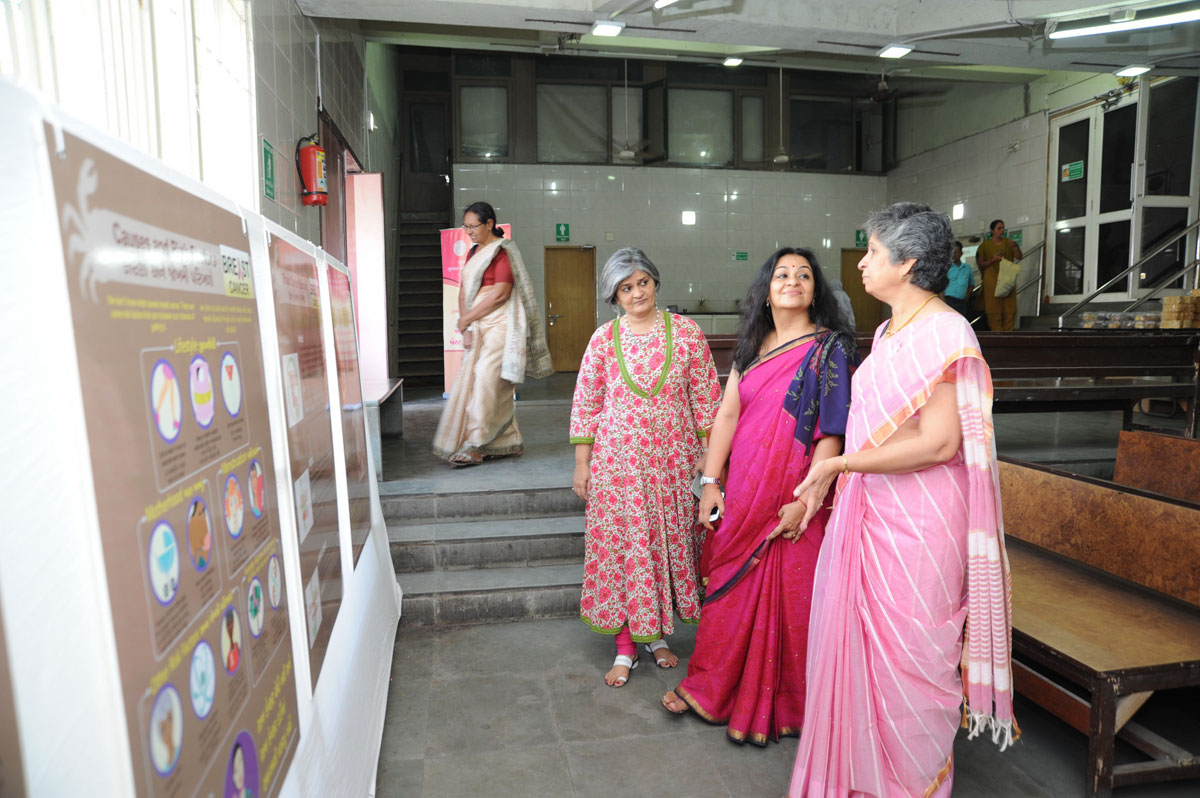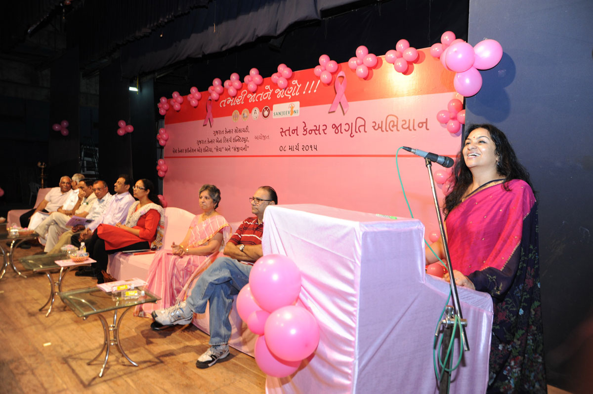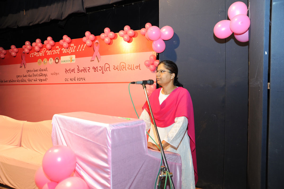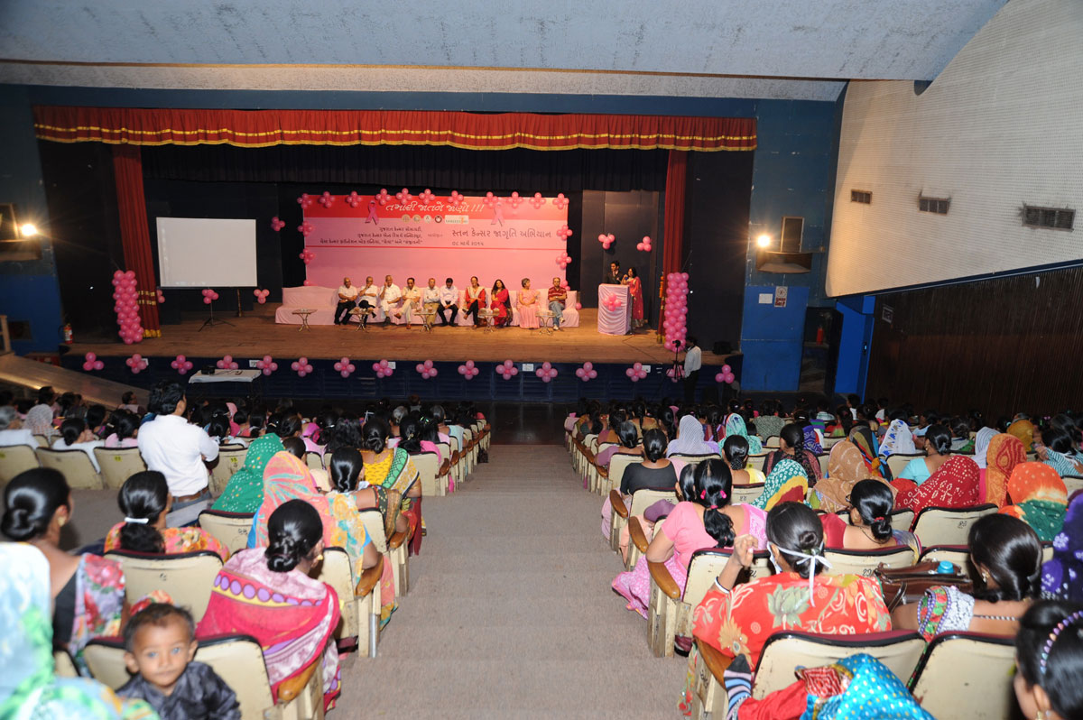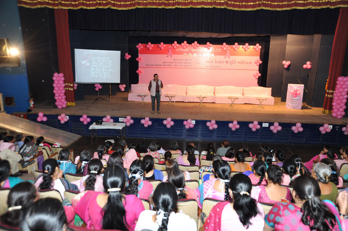 This was followed by a mega event at Thakorbhai Desai Hall, Law Garden from 09:30 AM onwards to educate 600 female volunteers of SEWA about myths of breast cancer. The message was conveyed through various Posters & Oral presentations by Specialist doctors.
