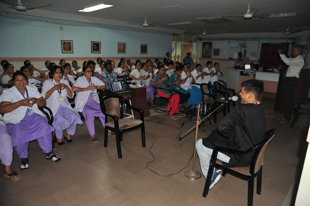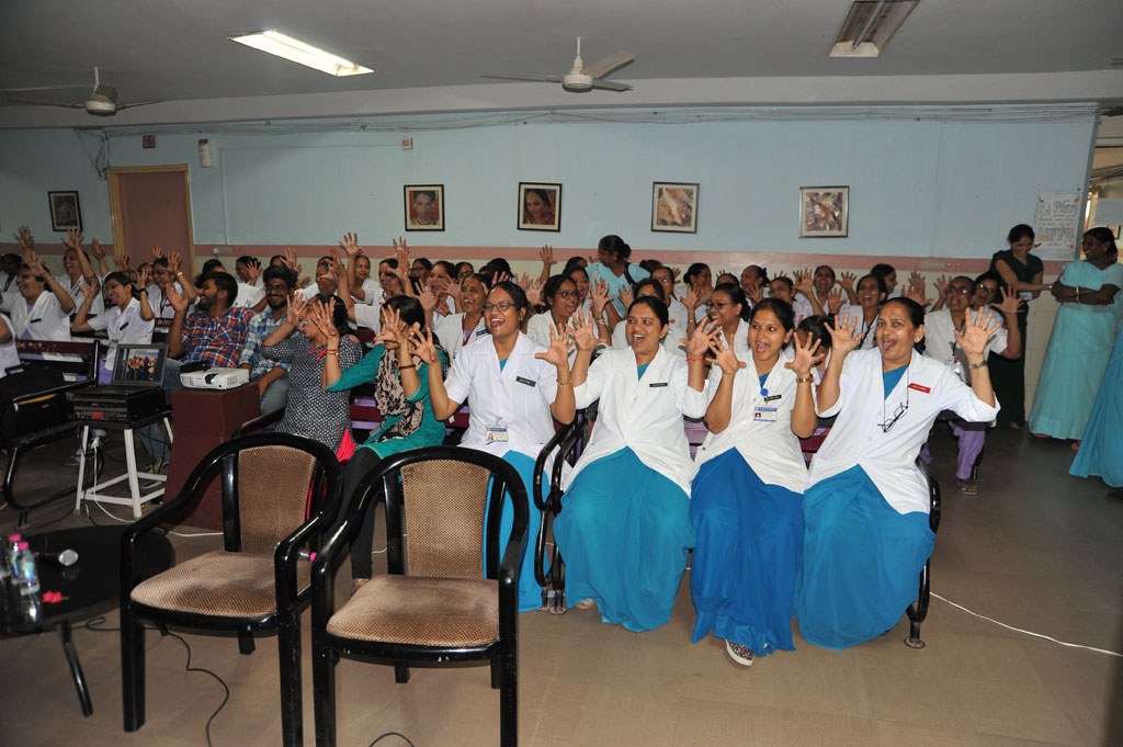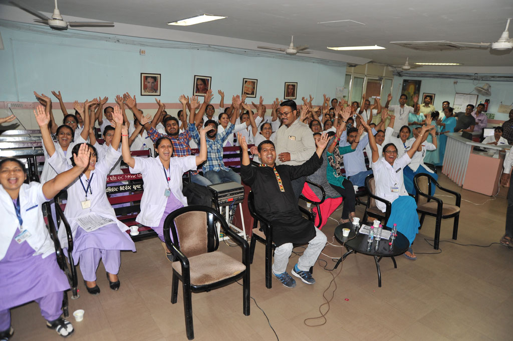 Stress busting laughter therapy session was conducted for nursing staff by Mr. Amit Verma. Laughing is an excellent way to reduce stress in our lives and can help to cope with a stressful lifestyle.