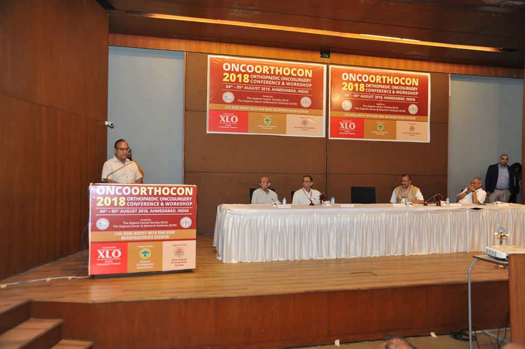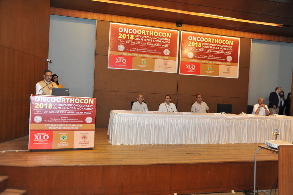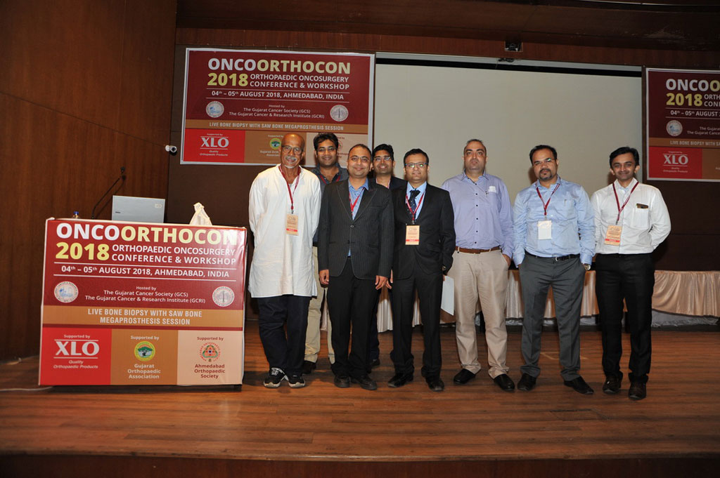 Oncoorthocon 2018 was a unique international orthopedic oncosurgey conference organized by Gujarat Cancer Research Institute (GCRI) on 4th & 5th August 2018. There was workshop on Live Operative sessions i.e. Bone Biopsy & Saw Bone workshop of megaprosthesis. The organizing chairman was Dr. Shashank Pandya and organizing secretary were Dr. Abhijeet Salunke, Dr. Jaymin Shah and Dr. Vikas Warikoo. The key highlight of this conference was plenary lecture by Prof. Shekhar Kumta (Professor and Vice Dean Hong Kong National University) on Computer Aided Tumor Surgery (CATS). This conference had lectures by more than 20 national orthopedic onco-surgery faculties. This conference had over 100 national and international delegates. There were 5 oral presentations and 16 e poster presentation during this conference.