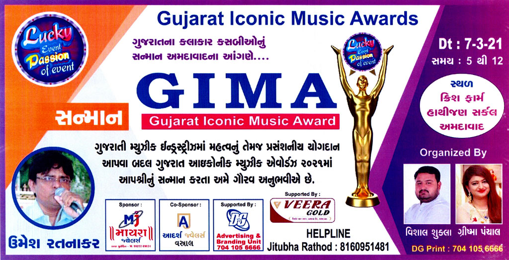 Mr. Umesh kumar L. Solanki, Jr. Clerk Account division has received GIMA-Gujarat Iconic Music award on 7th March 2021.