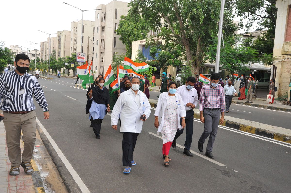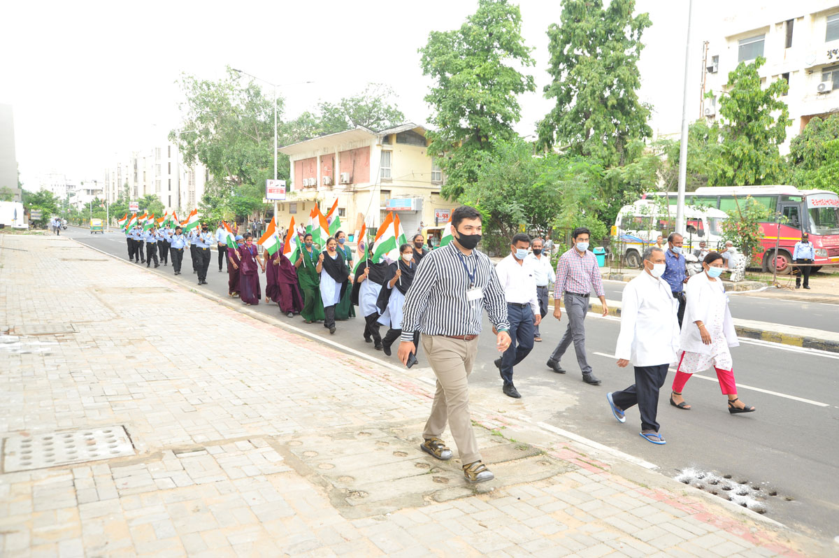 The Gujarat Cancer and Research Institute, (M.P. Shah Cancer Hospital) Ahmedabad Celebrates various programs under “Azadi Ka Amrit Mahotsav” as per the Guideline of the Government of India. Under the “Har Ghar Tiranga” the Institute hoisted The national flags at various buildings of the hospital from the 13th August to 15th August,2022. Also, Tiranga Yatra has also been organized by the Institute on the campus on 13th August, 2022 and An exhibition has been opened at the institute on the occasion of Partition Horrors Remembrance Day.