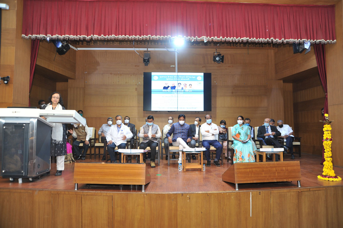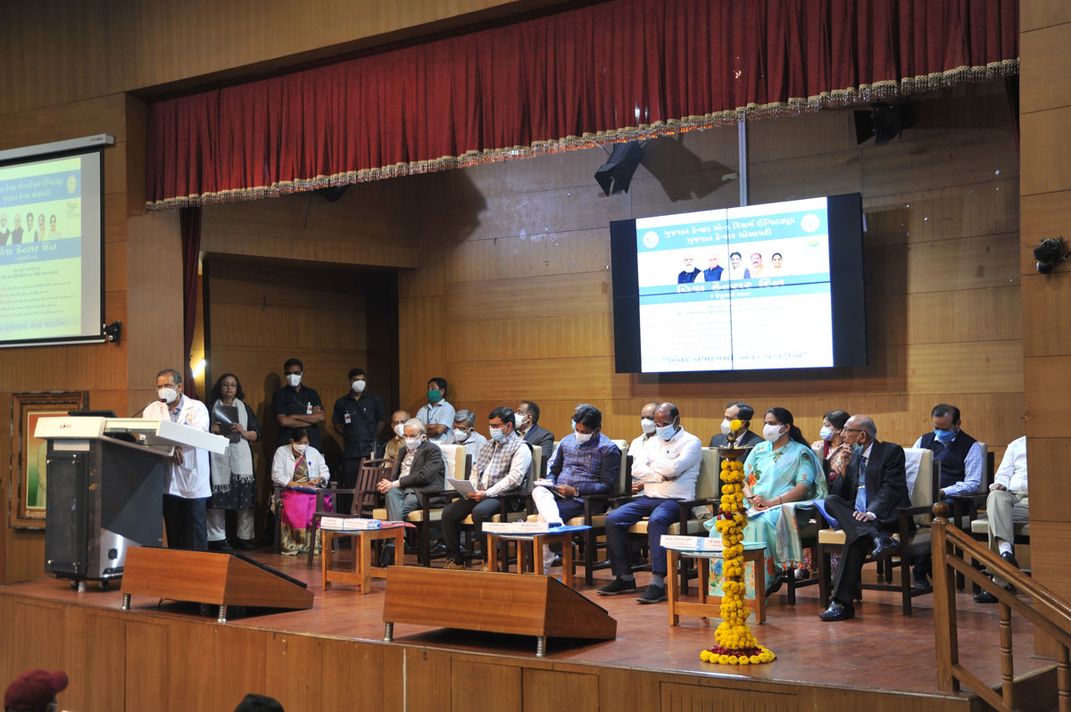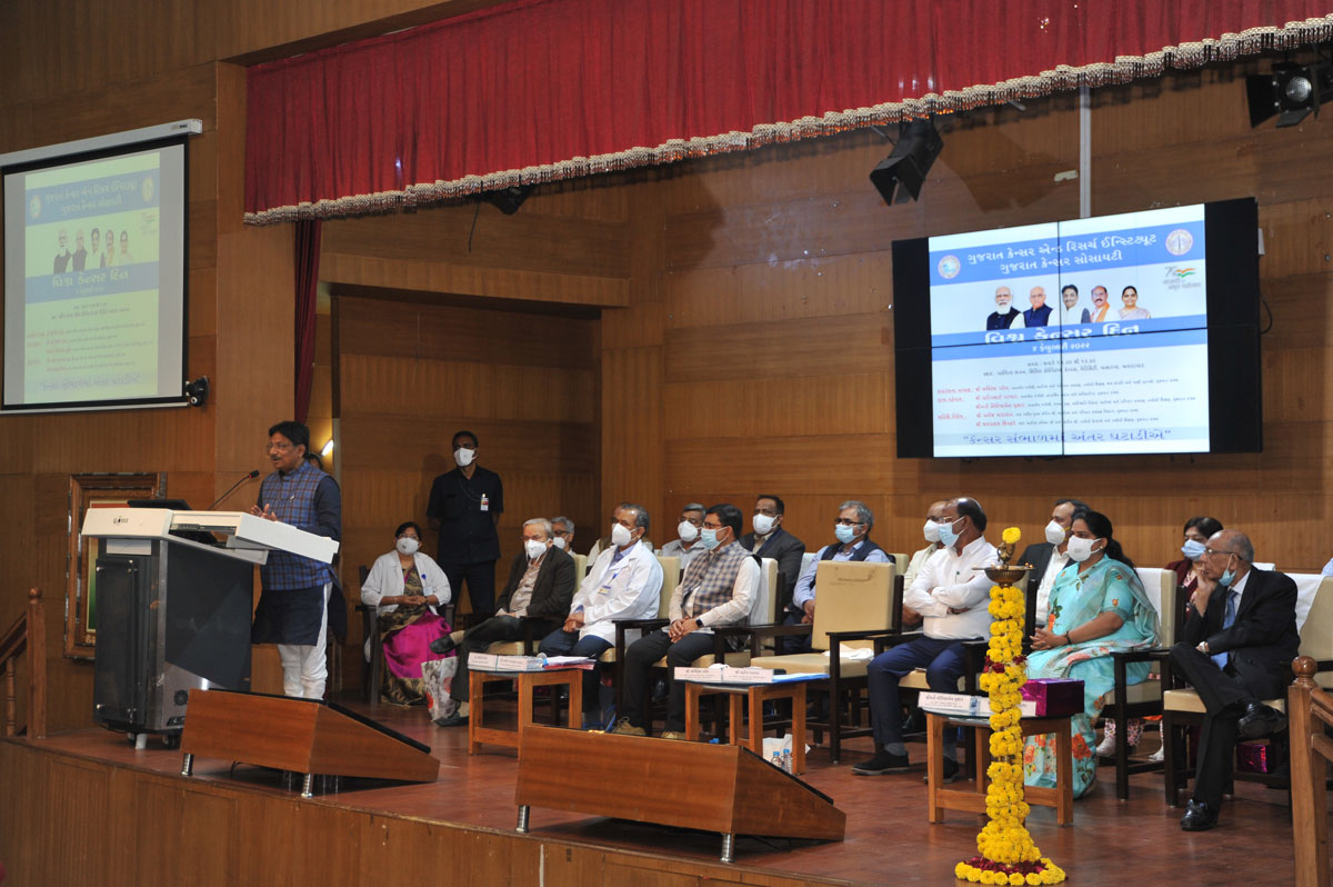 On World Cancer Day, GCRI has organized a community gathering of 60+ cancer survivor patents, who have more than 10-year disease free status at Asmita Bhavan Hall, Civil Hospital Campus, Ahmedabad. We have called our Health Minister Shree Rushikeshbhai Patel, Shri Pradeep Parmar, Shrimati Nimishaben Suthar, Shri. Manoj Agrawal, Additional Chief Secretory, Health & Family welfare department as the chief guests for this occasion. All the patients were facilitated by GCRI dignities and were given a Shawl as a memento. More than 10 cancer patients have delivered a speech sharing their own experience about defeating cancer. At the end of the programme, all cancer patients were given a helium balloon, which they have blown together, spreading a loud and clear message about Cancer victory.
