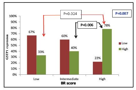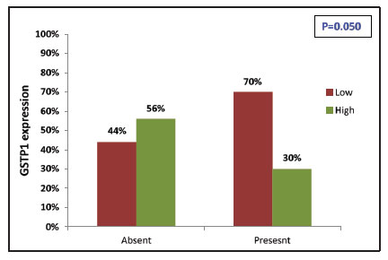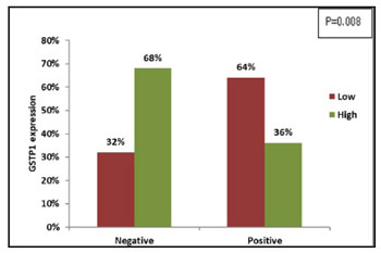 The results indicated that- cytoplasmic and/or nuclear GSTP1