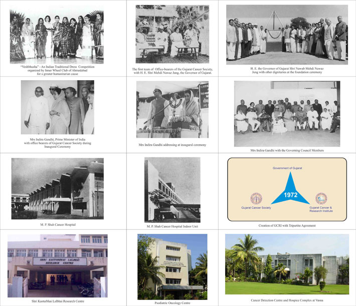 The Gujarat Cancer Society (GCS) was established in 1960 with donation of 5000 rupees as seed money collected from a charity cultural event organized by Inner Wheel Club of Ahmedabad (Rotary Club). The then Governor of Gujarat, H.E. Mehndi Nawab Jung suggested to utilize the donation money as seed value for establishing a cancer hospital in Ahmedabad under Gujarat Cancer Society. Later on with a donation of 55000 £ from Shri M P Shah, a philanthropist from London, and leasing of land from Govt. of Gujarat jointly germinated the seed into M. P. Shah Cancer Hospital in the year 1962, which later metamorphosed over years in 1972 and evolved into an institution of national and international repute as The Gujarat Cancer & Research Institute (GCRI). It was started as a small nucleus of 40 indoor patients ultimately expanded to 650 beds with all modern facilities of cancer treatment. It is an exceptional and most successful example of Public Private Partnership (PPP) model depicting a symbiosis between State Government, Non-Government Organization – GCS.