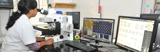 Department has more than 2500 samples annually for conventional cytogenetic and FISH test in hematological malignancies and solid tumor FISH. Recently a fully motorized Epi-Fluorescence Microscope (Imager.Z2) from Zeiss, Germany with special filter sets for FISH has been installed.